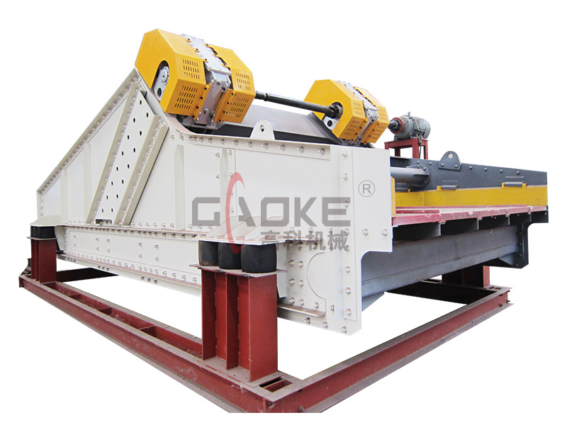香蕉型振動篩篩箱近似于香蕉形狀,運動軌跡為橢圓,篩面擁有20°傾角,物料進入篩面后在振動力的作用下迅速前進、松散透篩,完成篩分作業(yè)。高科機械GKXJ系列香蕉型振動篩使用激振器作為振動源,激振力大小可調(diào)整,篩分精度高,處理能力強。